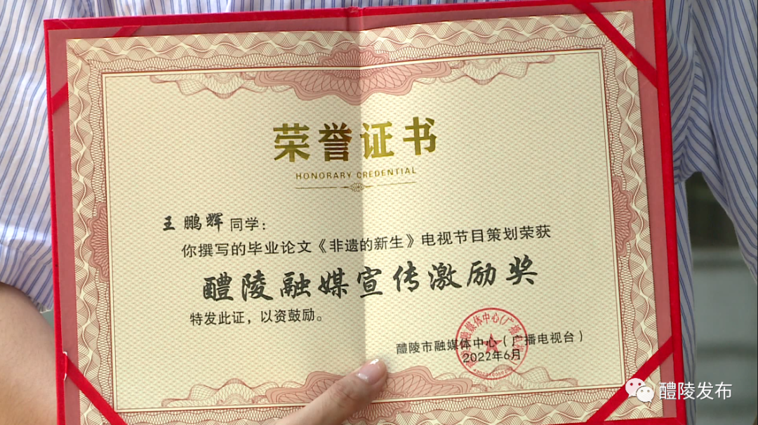 日前,醴陵融媒颁发首份“宣传激励奖”,得主是湖南大学新闻与传播学院新闻系2018级学生王鹏辉,他获奖的是毕业论文《非遗的新生》电视节目策划。