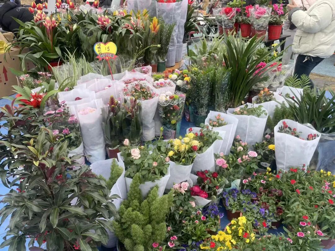 迎春花市区内,各类年宵花竞相绽放、姹紫嫣红,成为集市内一道靓丽的风景线。摊主余峰告诉记者,目前卖得最好的是仙客来和鸿运当头,“大家都喜欢喜庆的年宵花,买回家装点家居,图个新春吉祥。这两种花市场上很常见,很多人都养过,接受度高。”作为从事园林绿化工程的摊主,余峰的迎春花市摊位凭借大批量直采的价格优势,以薄利策略吸引顾客,半日营业额已超千元。“不为赚钱,就让大伙儿开开心心把春天搬回家。”