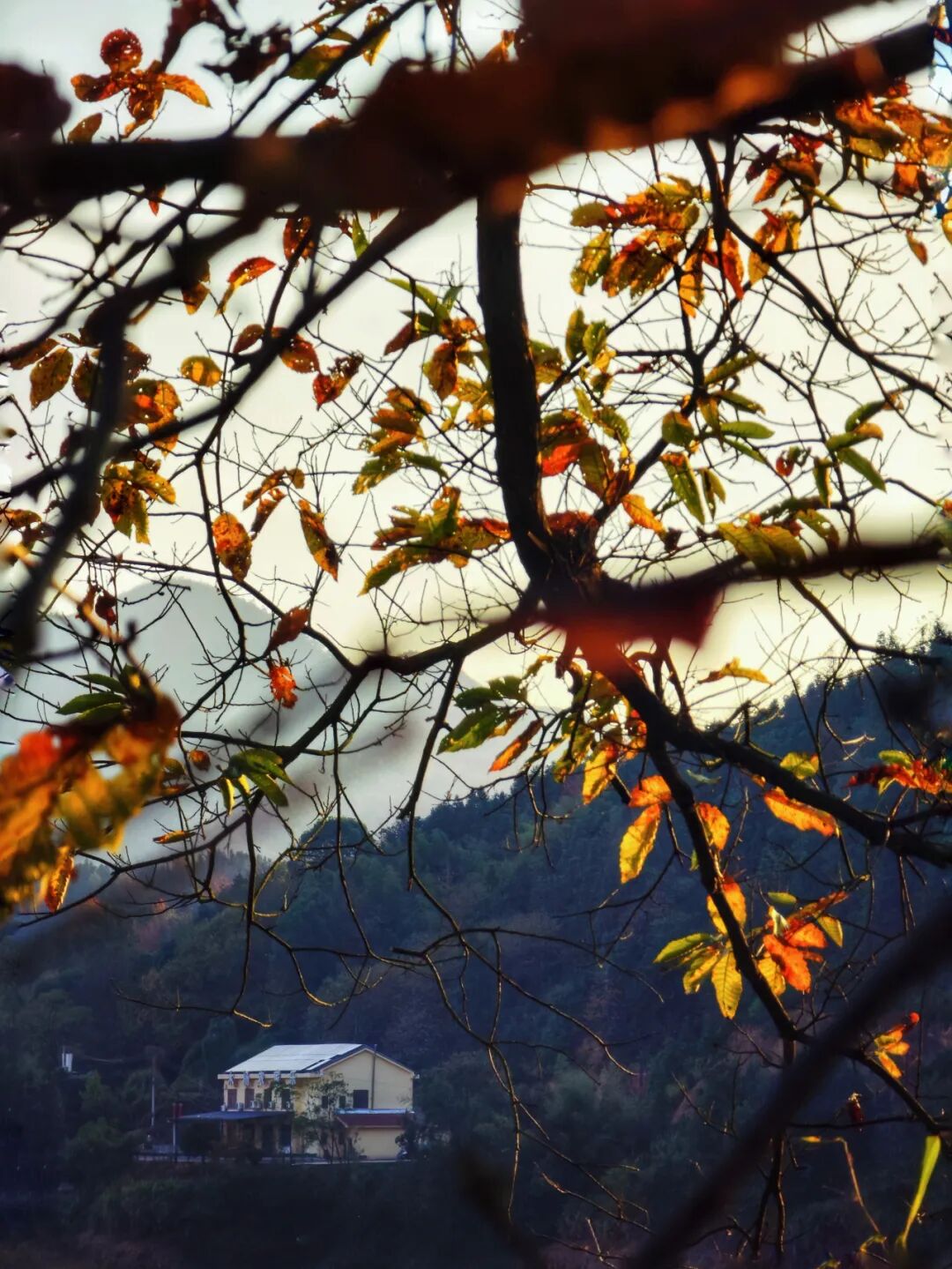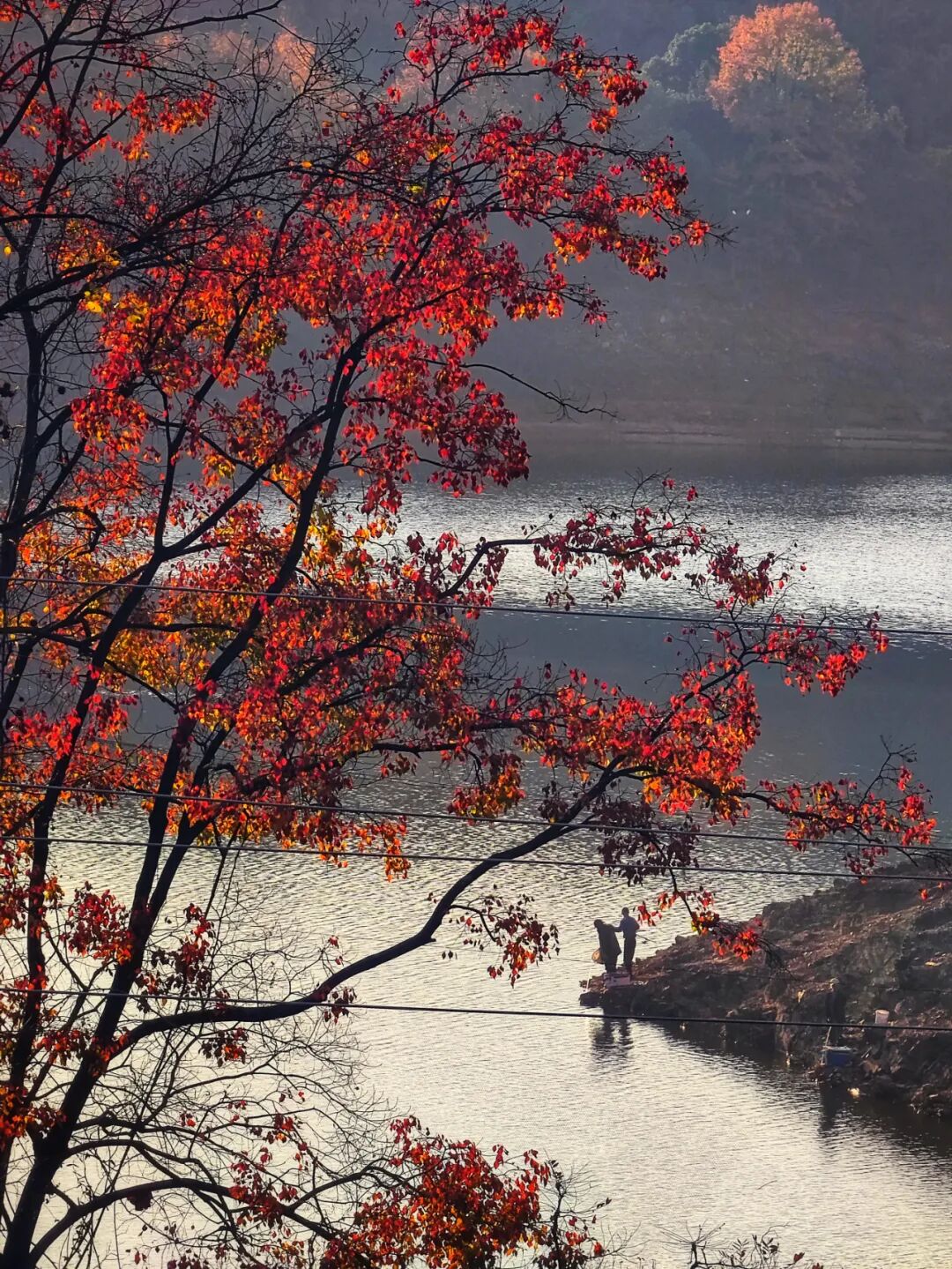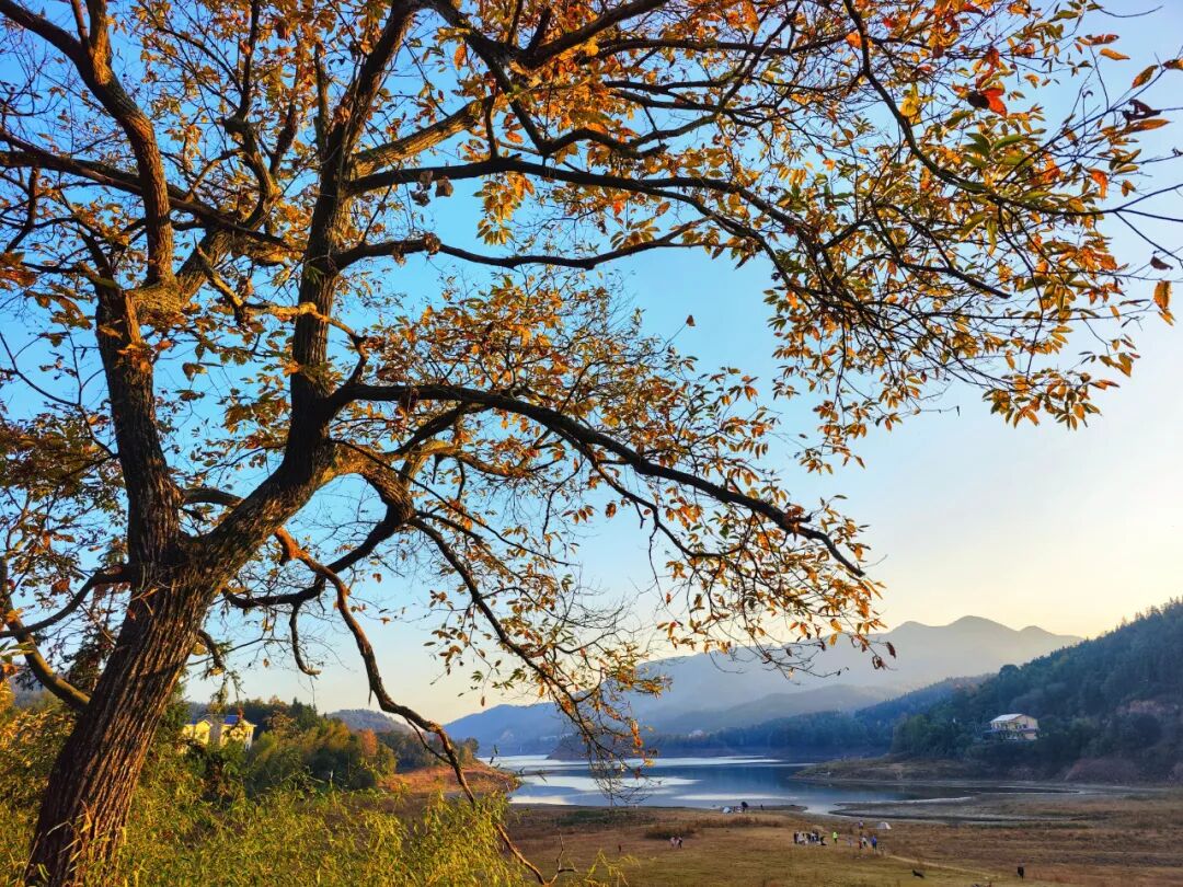 岸边的树木已染上金黄